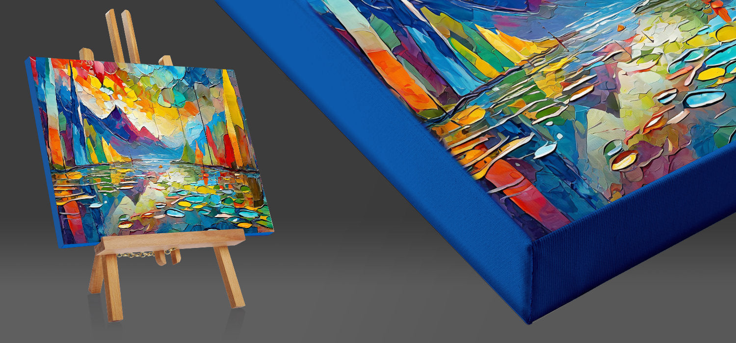 Esempio di stampa su tela con bordo coordinato, montata su telaio.Scopri altre idee nella sezione "Su Misura".