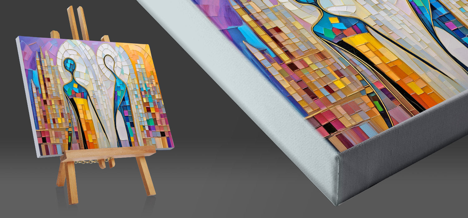 Esempio di stampa su tela con bordo coordinato, montata su telaio.Scopri altre idee nella sezione "Su Misura".